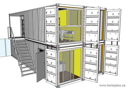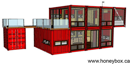 | We Build Shipping Container Structures - Based in Victoria, BC, Canada - Container Houses and Structures: Let's talk container and start a design based on what you have seen on the internet, our web site or your imagination. We sell new and used shipping containers and components worldwide: Please email equiries Email: info@honeybox.ca |
